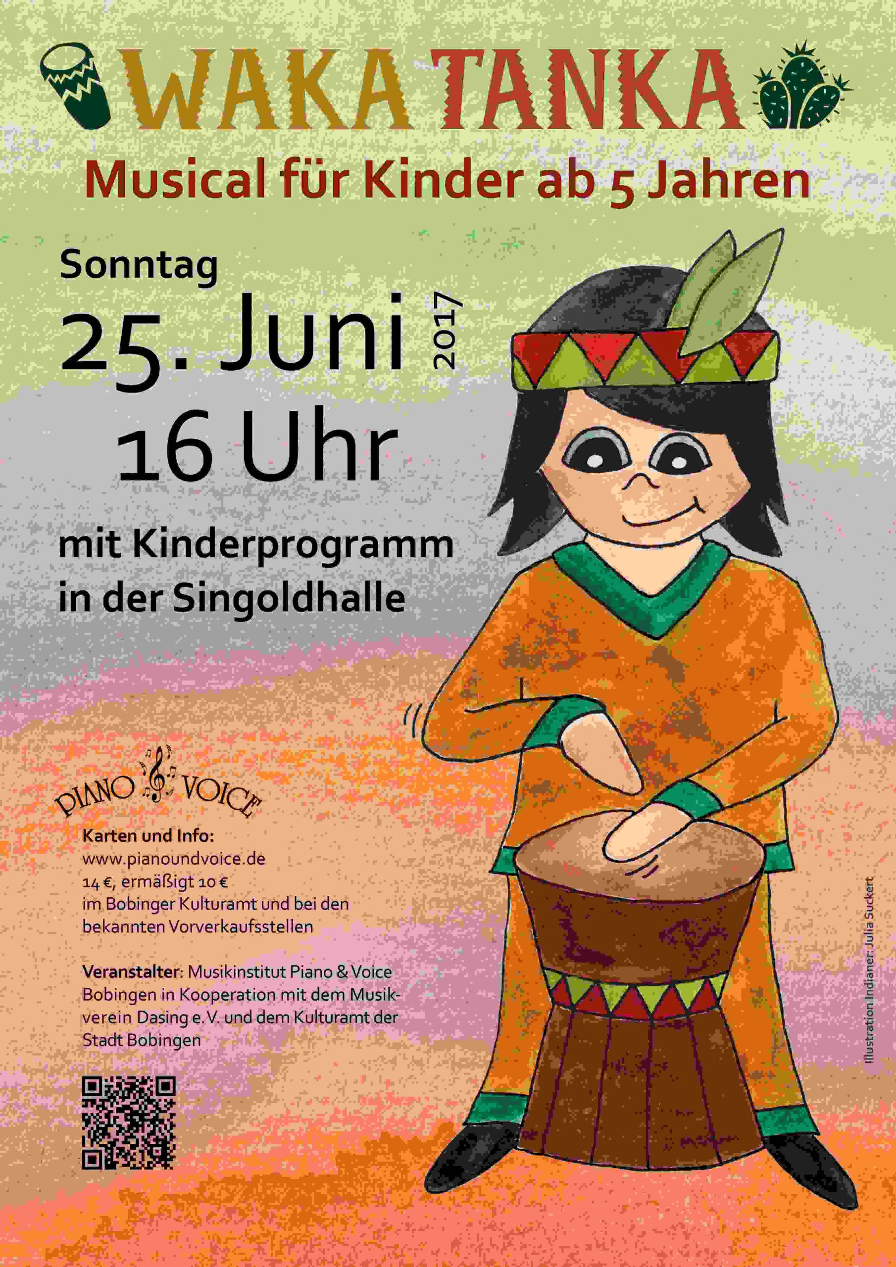 Bereits zum dritten Mal stellte Piano & Voice 2017 aus den eigenen Reihen eine große Musicalproduktion auf die Beine: An „Wakatanka“ wirken Jugendchorgruppen sowie junge Gesangssolisten des Musikinstituts mit, singend, spielend und tanzend, und live begleitet vom Orchester des Musikvereins Dasing. In wochenlanger Arbeit von Familienangehörigen und Freunden entstanden Bühnenbild, Kostüme und Dekoration.