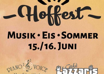 Ein buntes Wochenendprogramm, Musik, Workshops, Basteln, herzliches Beisammensein und ein reiches gastronomisches Angebot bilden seit 2022 das Herzstück beim „Hoffest“. Seitdem zieht die sommerliche Veranstaltung unter dem Motto „Musik, Eis, Sommer“ Jahr für Jahr Hunderte Gäste an, und zwar ebenfalls 2023, 2024 und 2025.